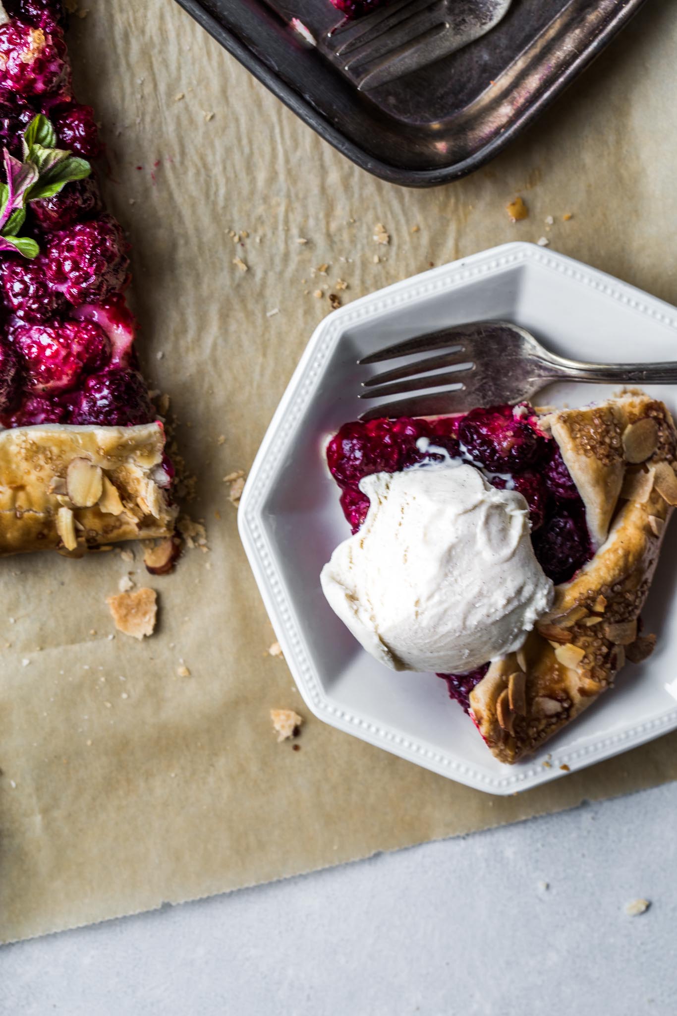 I like to slice up the galette and serve it warm with a scoop of ice cream on top. You can also serve it with a dollop of whipped cream.