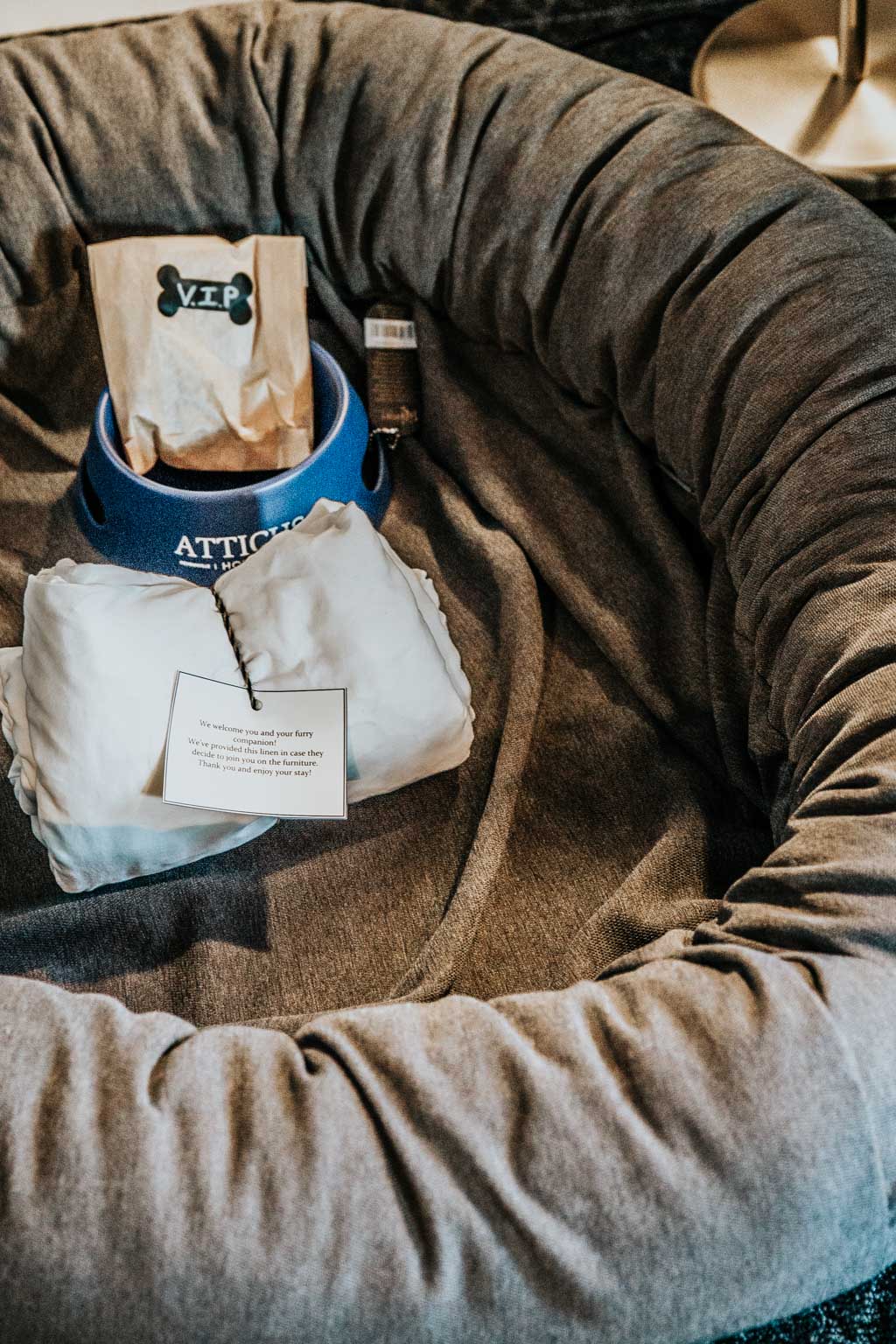 This 36-room hotel is luxury at its finest. Our room was outfitted with a separate seating area, fireplace, and the most cozy Pendleton robes. We were so comfortable in our beautiful room and Sammie enjoyed herself too!