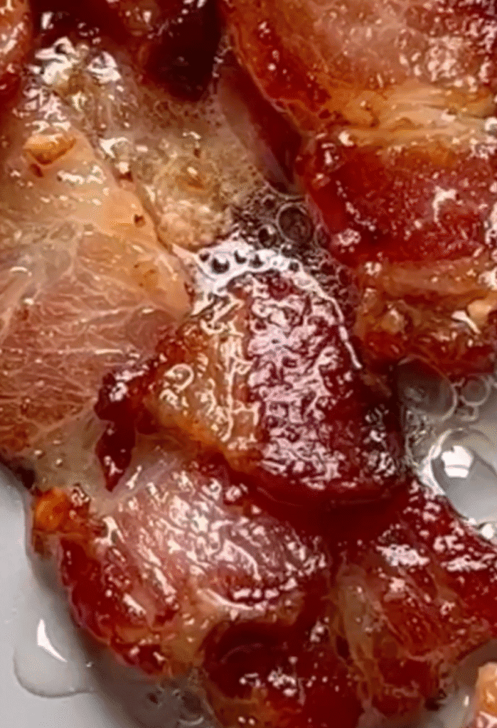 - Remove bacon from pan with a slotted spoon, leaving fat in pan.
