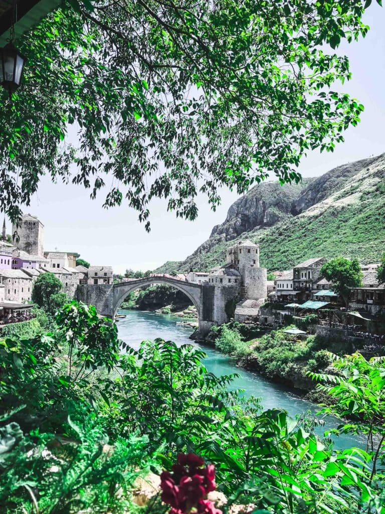 In spite of the terrible scars left in Mostar from the war, it is still a beautiful city. It’s situated in the gorgeous green Neretva river valley, surrounded by mountains. No landmark in Mostar is more beautiful or more loved by the city’s residents than the Old Bridge, spanning the Neretva river. Because the East side of Mostar is predominantly Muslim “Bosniak”, and the west side is mostly the Catholic “Croats”, the bridge is considered to be a powerful symbol of the point where East meets West, a metaphor that very different cultures and religions can live in peace together.