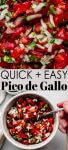 This fresh, easy Pico de Gallo recipe is a classic Mexican salsa made from tomatoes, onions, lime, chiles, and cilantro. It’s a delicious snack to enjoy with chips or as a topping on tacos, eggs, and burrito bowls!