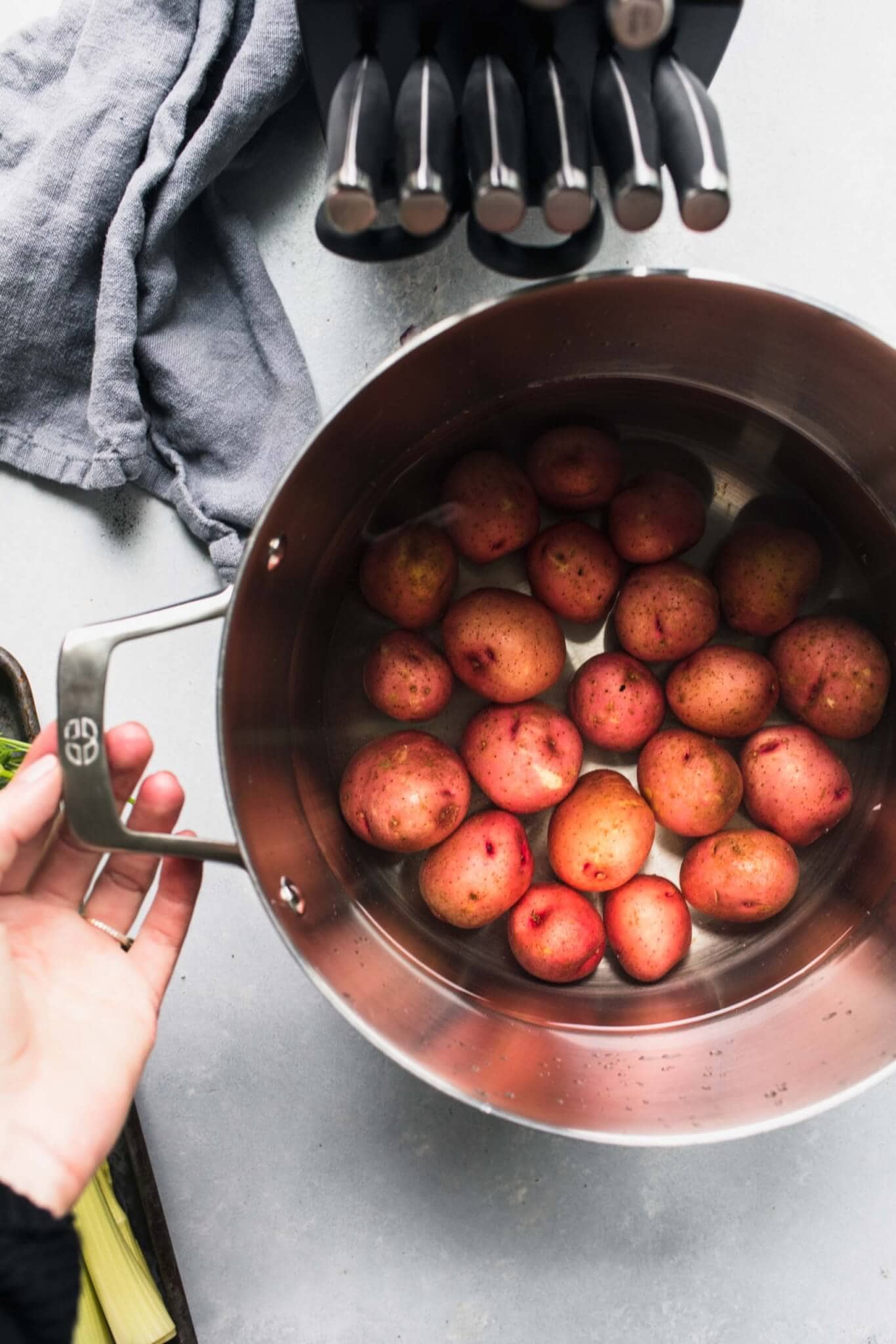 - Add potatoes to cold water, then bring your pot to a boil. They’ll cook faster that way.