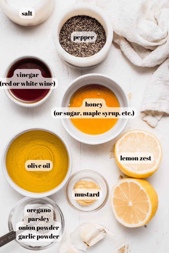 • Red pepper flakes – It isn’t a zesty Italian dressing without the red pepper flakes! However, you can leave them out if you aren’t a fan of spice.