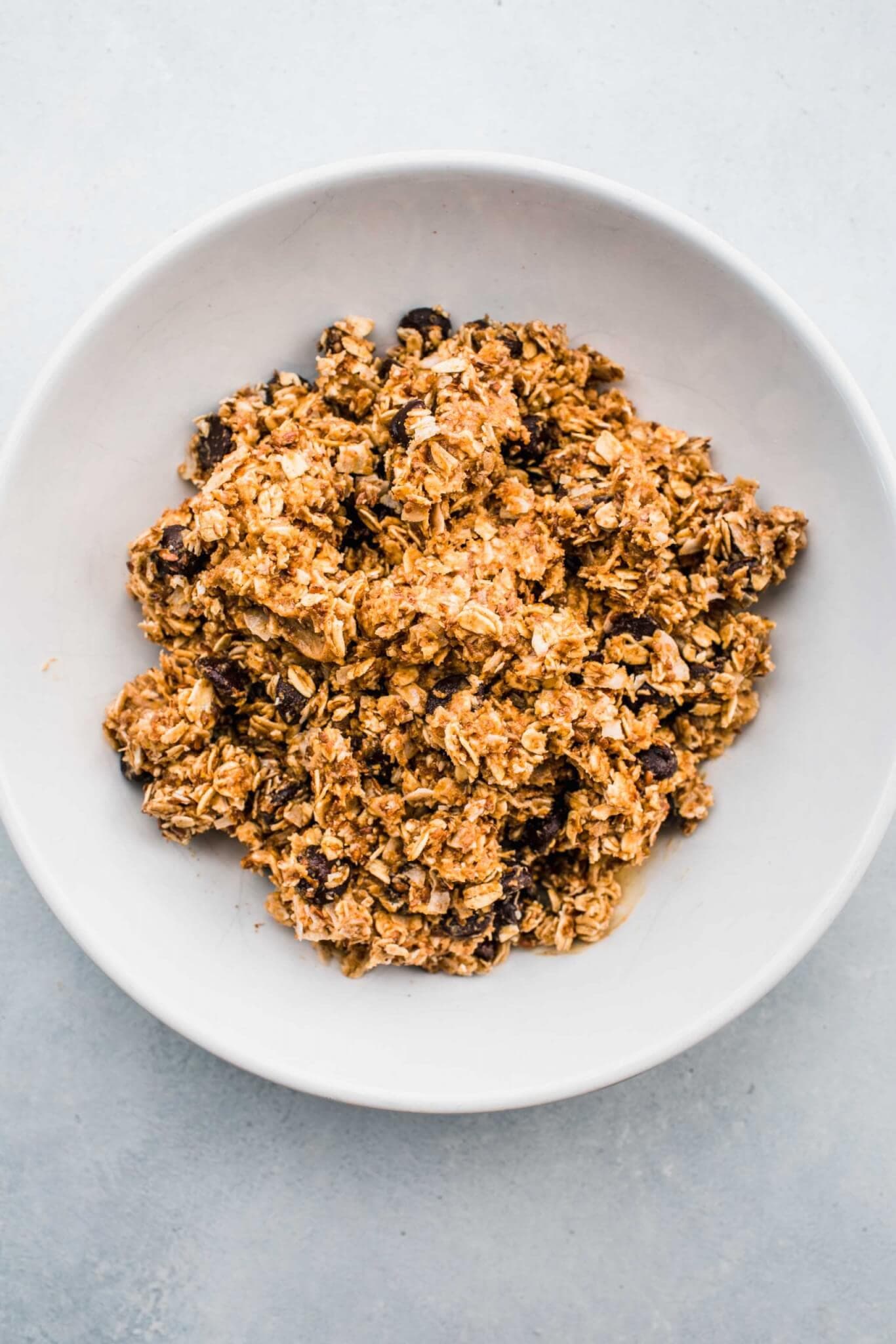 - Chill the oat mixture in the fridge for at least a half hour. This makes them easier to roll and helps them hold their shape.