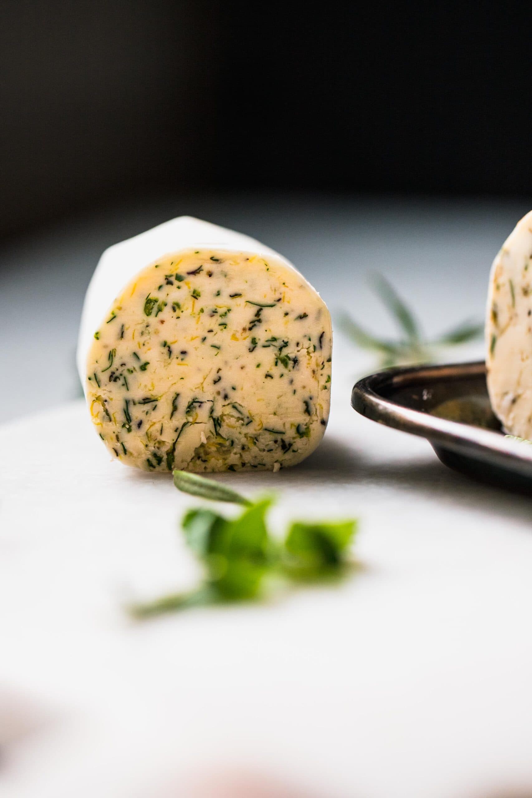 I kept the seasonings simple, with just a sprinkle of salt and pepper. But there’s an explosion of flavor at the end when you top your seared steak with a bit of compound butter. Compound butter is butter that is seasoned with fresh herbs and garlic.