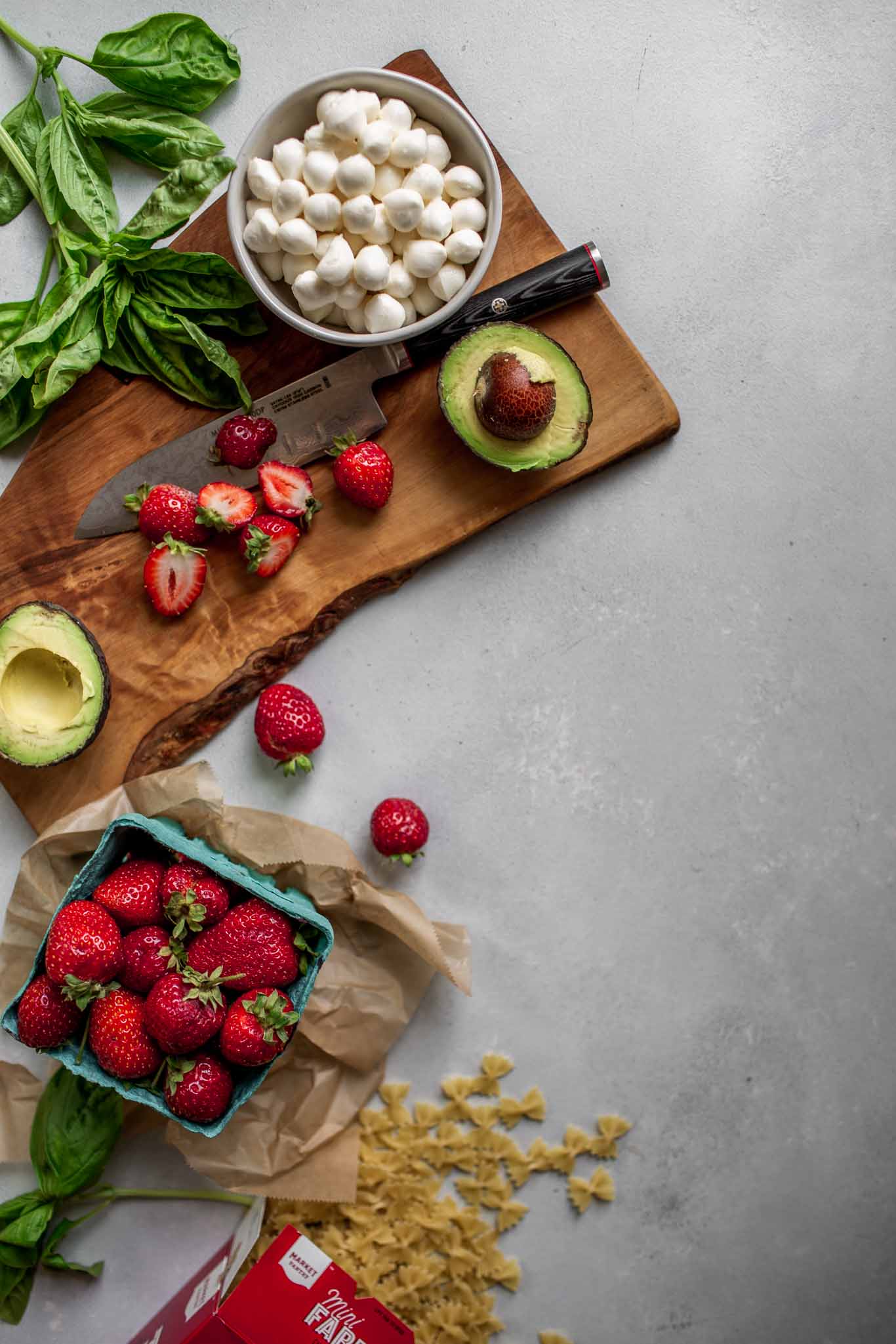 Here in Oregon, we have the perfect summertime climate – with warm sunny days and cool nights, it’s the perfect climate for growing the wine that our state is known for, Pinot Noir. But did you know it’s also the perfect weather pattern for growing the sweetest and most delicious strawberries? Oregon strawberries are just the best – and I’m making the best of the last berries of the season by adding them to a caprese pasta salad.