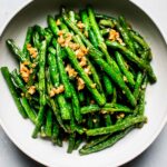 These copycat Din Tai Fung Green Beans are deliciously crispy and coated with lots of savory garlic and a spicy chili crisp. It’s the best umami-forward side dish to pair with all of your takeout-inspired favorites!